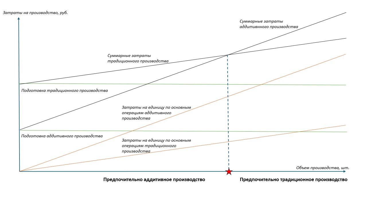 Методика определения точки выбора альтернативы между аддитивной и традиционной технологией производства при организации серийного производства предприятий машиностроения